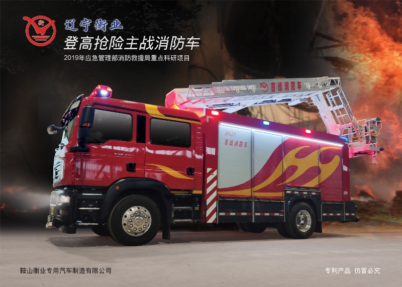 登高搶險主戰(zhàn)消防車是2019年應急管理部消防救援局重點科研項目產品。車輛底盤為汕德卡ZZ5206N471GF5底盤,發(fā)動機型號MC07H.35-60,功率:257kw,國六排放標準,軸距:4700mm,容量:水3000kg,泡沫1000kg,罐體材質:耐低溫高分子化合物PP材質,消防泵為美國大力,型號為KSP1000;流量:60L/s;消防炮為美國阿密龍,型號為3482+5177,照明系統(tǒng):發(fā)電機功率為5.5Kw;牽引絞盤系統(tǒng):杭州天銘,型號為FEW16500;液壓工作臂由三節(jié)臂架組成,其中有兩節(jié)伸縮和一節(jié)小臂。工作平臺載荷270公斤,平臺額定工作高度19米。