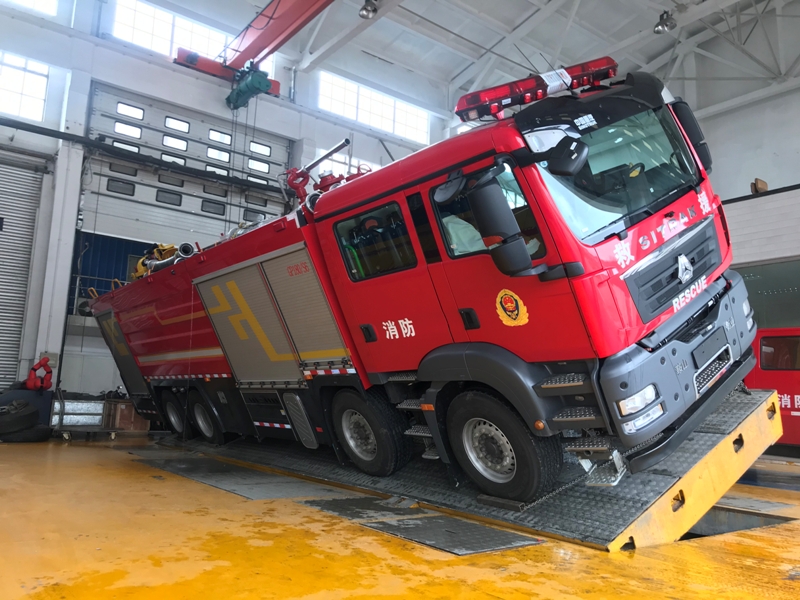 車輛底盤為ZZ5207TXFV471GF5底盤,發(fā)動機(jī)型號MC07H.35-60,功率為257kw,國六排放標(biāo)準(zhǔn),軸距4500mm,罐體材質(zhì)采用采用優(yōu)質(zhì)304不銹鋼板,容罐容量:水3600kg+B類泡沫900kg+A類泡沫200kg;消防泵為KSP1000(美國大力);壓縮空氣泡沫系統(tǒng):品牌:美國大力,型號:KSPBC1000/220型,型式:全自動集成式壓縮空氣A類泡沫系統(tǒng),消防炮為PLKD48手動及電控,升降照明系統(tǒng)YZH6-4.83CFA,牽引絞盤系統(tǒng)為杭州天銘FHW16500 整車器材箱卷簾門防水槽采用專用鋁合金開模型材,型材上加裝LED照明燈帶,使整車形成環(huán)繞式照明,既美觀且照明效果又好。器材箱卷簾門下部翻轉(zhuǎn)踏板,采用一體式鋁合金擠壓型材,模塊化組裝,增加了整車的品質(zhì)。箱體內(nèi)部器材框架采取了專用的的擋板型材,有效的保證了內(nèi)部器材固定的穩(wěn)定性,同時(shí)使器材標(biāo)牌整齊化一,清晰明了。壓縮空氣系統(tǒng)采用美國大力集成式系統(tǒng),結(jié)構(gòu)緊湊、性能優(yōu)良、操作簡便統(tǒng)一空間利用率高??諌簷C(jī)流量為國內(nèi)目前CAFS系統(tǒng)中最大流量,可達(dá)105L/S,更好地滿足于壓縮空氣泡沫系統(tǒng)性能需求。