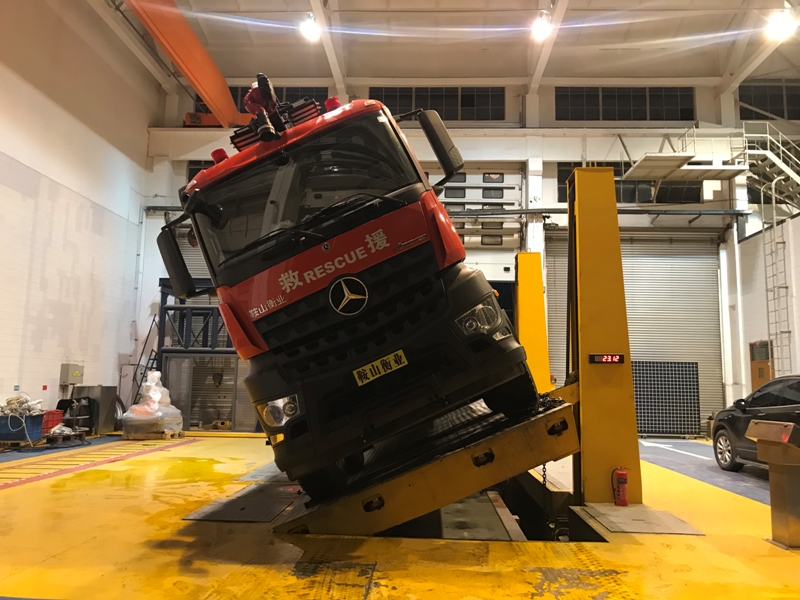 車輛底盤為德國奔馳Arocs4158底盤,發(fā)動機(jī)型號OM473LA,功率:425kw,國六排放標(biāo)準(zhǔn),軸距:1750mm+4600mm+1350mm,罐體材質(zhì):采有優(yōu)質(zhì)不銹鋼板304;容罐容量:水15000kg,泡沫3000kg;消防泵為美國大力,型號為ZSP2650;流量:10000L/min;負(fù)壓式泡沫比例混合器,型號為英國FSA;舉升臂頂端消防炮Ⅰ,型號:3482+5177美國阿密隆,流量80L/S,射程:水≥80m,泡沫≥70m;車體尾部消防炮Ⅱ,型號:DICODOPLUS 150法國博克,流量:10000L/M,射程:水≥110 m,泡沫≥100m,大流量消防槍,車頂前部設(shè)有舉升高度為12米的臂架。 整車器材箱卷簾門防水槽采用專用鋁合金開模型材,型材上加裝LED照明燈帶,使整車形成環(huán)繞式照明,既美觀且照明效果又好。車頂前部設(shè)有舉升高度為12米的臂架,頂端加裝有進(jìn)口電控消防炮。車頂后部設(shè)有進(jìn)口電控大流量消防炮。箱體內(nèi)部器材框架采取了專用的的擋板型材,有效的保證了內(nèi)部器材固定的穩(wěn)定性,同時(shí)使器材標(biāo)牌整齊化一,清晰明了。車頂兩側(cè)女兒墻內(nèi)部加裝有LED照明燈帶,可滿足夜間工作人員在車頂操作時(shí)對照明需求。配備大流量消防槍,可噴射水、泡沫、等滅火介質(zhì),滅火效率極高。