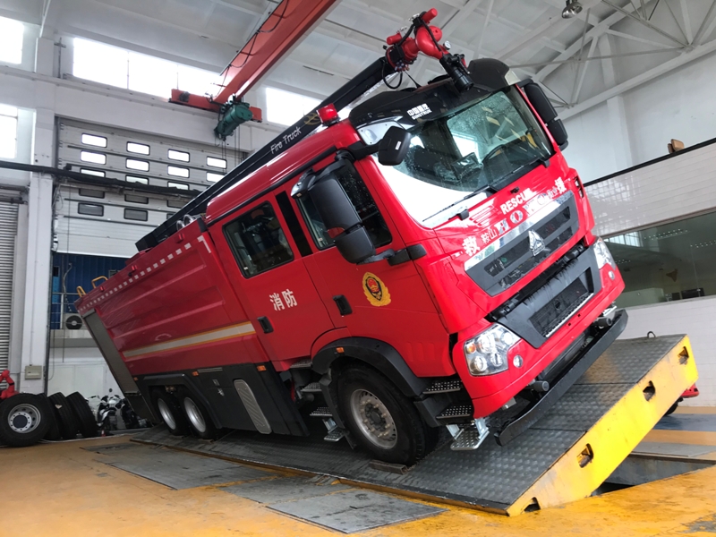 車輛底盤為豪沃ZZ5357TXFV464MF5底盤,發(fā)動機(jī)型號MC11.46-61,功率:341kw,國六排放標(biāo)準(zhǔn),軸距4600+1400mm,罐體材質(zhì):優(yōu)質(zhì)碳鋼板;容罐容量:水18000kg;消防泵為上海雄真CB10/80-XZ;消防炮為威斯特PSKD60W,舉升高度10.5米。 車輛外觀造型美觀,且內(nèi)部空間寬敞舒適,滿足作戰(zhàn)人員需求。整車器材箱卷簾門防水槽采用專用鋁合金開模型材,型材上加裝LED照明燈帶,使整車形成環(huán)繞式照明,既美觀且照明效果又好。器材箱卷簾門下部翻轉(zhuǎn)踏板,采用一體式鋁合金擠壓型材,模塊化組裝,增加了整車的品質(zhì)。箱體內(nèi)部器材框架采取了專用的的擋板型材,有效的保證了內(nèi)部器材固定的穩(wěn)定性,同時(shí)使器材標(biāo)牌整齊化一,清晰明了。